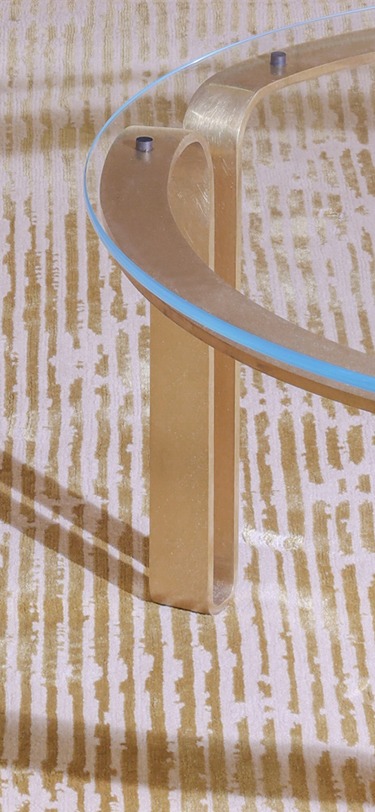 We envisioned a seamless ‘ribbon’ of brass that effortlessly suspends the glass top and plaque. A flowing, open, visually light spatial form with purity of structure, expressing the richness of the unadorned brass. It takes inspiration from the clarity of form and economical use of the rolled metal plate previously used in the street tree guards we developed for the City of Sydney. The craftsmanship executed by the fabricators makes the table appear deceptively simple with the brass structure defining the leg profiles in a continuous flowing band.